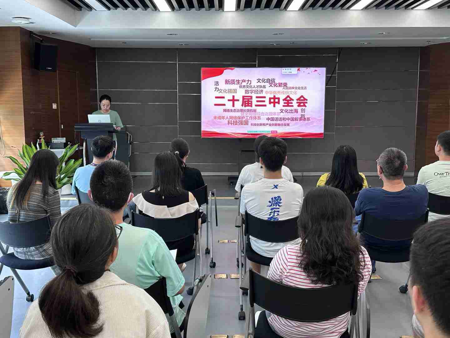 與會人員深入學習《決定》內容。。黨的二十屆三中全會提出必須增強文化自信,,發展社會主義先進文化,,,,弘揚革命文化,,,,傳承中華優秀傳統文化,,,加快適應信息技術迅猛發展新形勢,,,,構建更有效力的國際傳播體系,,,,這為廣大文化產業工作者指明了奮斗方向。。。