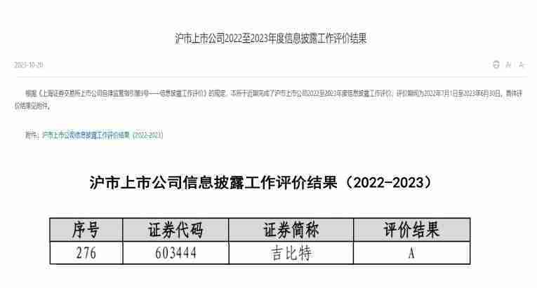 近日,,,,上海證券交易所發(fā)布2022-2023年度信息披露工作評(píng)價(jià)結(jié)果。。。。一競(jìng)技(股票代碼::603444)憑借規(guī)范的公司治理、、、、高質(zhì)量的信息披露以及良好的投資者關(guān)系管理再次榮獲信息披露工作A級(jí)評(píng)價(jià),,,,公司連續(xù)兩年獲此殊榮。。